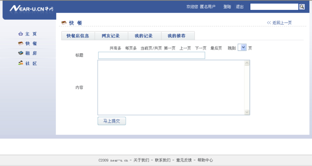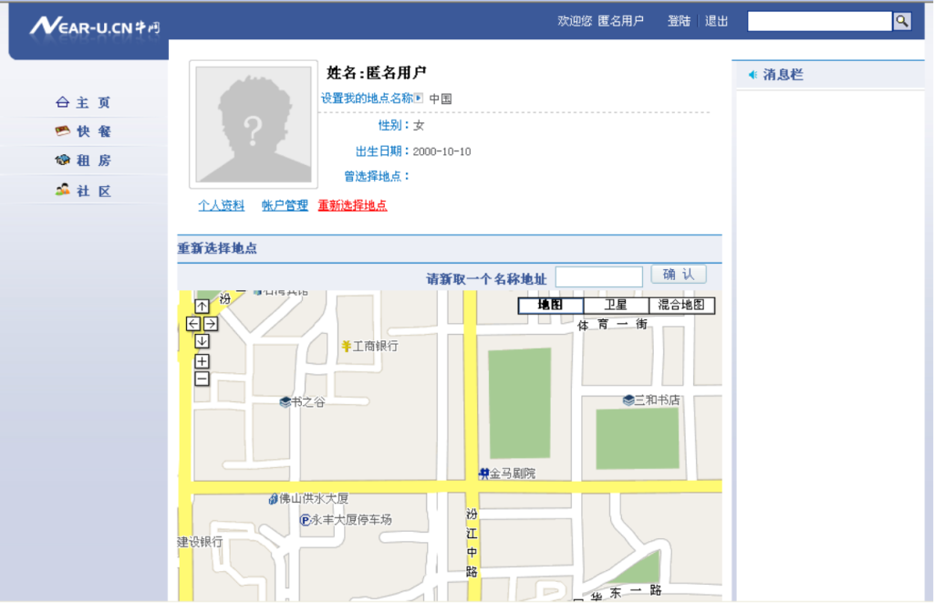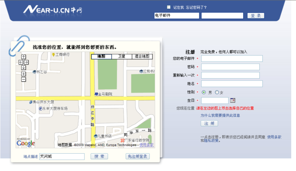 扯远了,由于开心网不可能鸟他,所以自己决定找同学合伙凑了2000元人民币,第一期50%的开发费用给他的同事开始开发网站。因此聪米网的前身,牛网near-u.cn诞生了,但没有人知道,因为网站框架建好后还没有开始运营就破产了。这是一个集合了bbs论坛,外卖信息平台,以及社交平台功能的网站,纯正意义上的LBS(location based service)基于地理位置服务的网站,在国内应该说是非常超前的,但因为运营的工作量太大,他一个人根本应付不过来,可网站根本看不到盈利的希望,同时他还要备考9月份的注册会计师考试,结果他放弃了,网站也被他的同事拿去了。后面他们有没有继续开发就不知道了,但多年以后他发现了有一个叫大佛山人才网的网站参考了他的创意,让用户可以在地图上找工作,不过好像也没有火起来,但无论怎么说这都是一个非常好用的功能,只是这些跟他有没有关系就无从考究了。